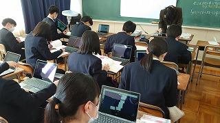 「地理B」では、Web「地理院地図」を使用して、地形での土地利用の比較をしました。地形の違いから水の得やすさなどを学びました。