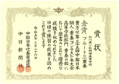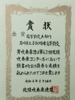 高校A部門に出場し金賞を受賞しました。
