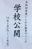 本校でも,11月1日から7日までの期間(3日・4日を除く)は「いしかわ教育ウィーク」の一環として学校を公開しています。多くの保護者の皆さんのご来校をお待ちいたしております。