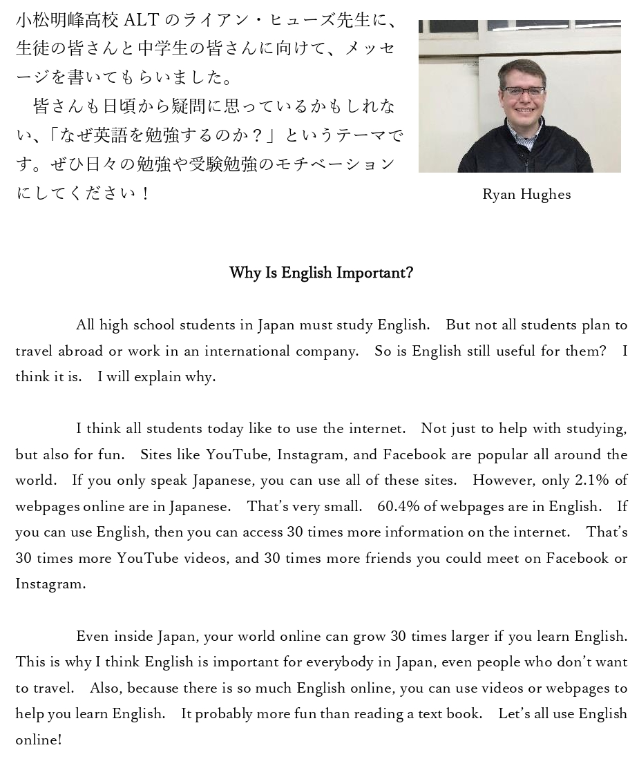 海外留学はハードルの高いものだと思われますが、今回のお話を聞いてチャレンジしたい!と思う生徒が増えたらいいですね。
