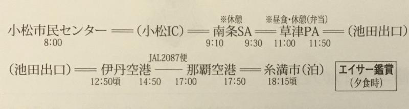 これから伊丹空港に向かいます。午後には沖縄に到着予定です。