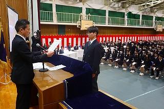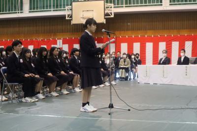 閉会式で生徒会長の大薮結菜(3年松陽中卒)が「体育祭に向けて不安はたくさんありましたが、多くのみなさんによる準備や協力のおかげで無事閉会式を迎えられました。今年の明峰祭のスローガンは【Beyond your best~咲き誇れ三つの華】