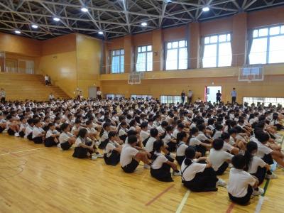 7月17日に1学期の終業式を行いました。校長先生のお話や生徒指導から夏休みの生活についてのお話がありました。最後は、全校で校歌を歌いました。