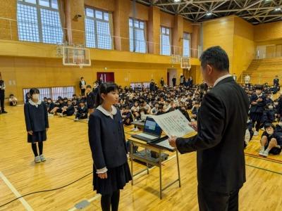 11月7日に任命式を行いました。後期学校の中心となってがんばってくれます。