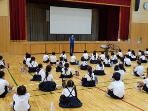 9月9日(木)5年生児童を対象にピュアキッズスクールを実施しました。白山警察署の方に来ていただき、いじめについて学習しました。日常の些細な意地悪やからかい、悪ふざけ等が、知らず知らずのうちにいじめにつながっていくことや、いじめを見逃してしまう鈍感さが、いじめを重大事件へと発展させてしまうことを学びました。