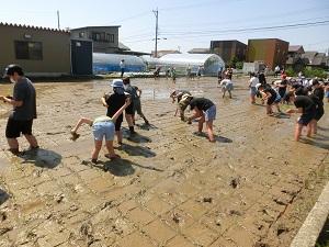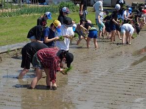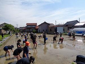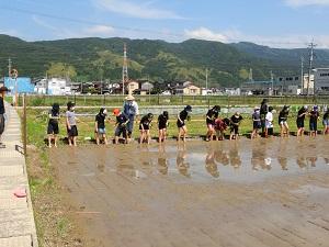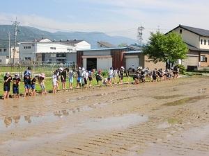 5月28日(金) 真夏を思わせるような強い日差しの中、5年生が田植えを体験しました。今年度も井口グリーンワークスさんにお世話になりました。「スーパーに行けば何でも手に入る時代だけど、食べ物を作るためにこれだけ手間暇かけていることを感じてほしい。」とのお話がとても印象に残りました。とても貴重な体験になりました。