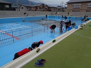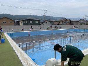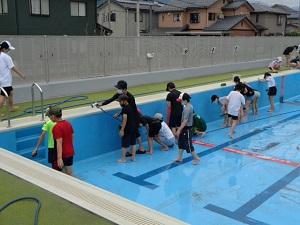 6月8日(火)6年生がプール掃除をしてくれました。冬の間にたまっていた泥汚れがきれいに洗い流され、ピカピカのプールによみがえりました。6年生のおかげで、清潔で安全なプールに入れそうです。ありがとうございました。