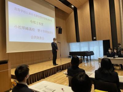 先日1月9日(土)、にぎわいの里ののいちカレードにて、小松明峰高校と総合的な探究の時間についての合同発表会を行いました。