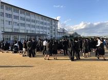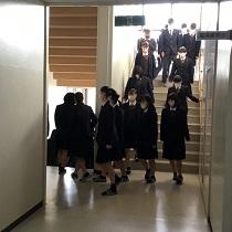 本日10月29日(木)午後、避難訓練が行われました。昨年までとは異なり、訓練開始時まで出火場所が知らされませんでした。教員、生徒は避難経路を判断して素早く避難しました。避難完了までの目標時間を1分短縮し、7分ちょうどで全員の無事確認をすることができました。消防署の中山さんから、一部改善点はあるものの、スムーズに避難できたことを褒めていただきました。そのあと、訓練の意味や訓練を振り返って今後に備えることなどについて、室田副校長が総評しました。さらに今年は、3階に設置されている避難袋による避難の実演が行われました。