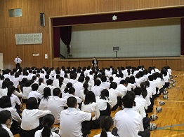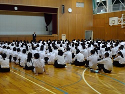 明日からの修学旅行のために結団式が行われました。皆は大きな期待とともに、修学旅行の意義や注意事項を真剣に聞き、確認していました。
