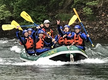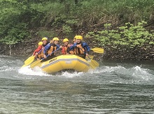 2日目の午前中は雨の中 ラフティングをしました。雨が降っている方が水量が増し、波が立つので、迫力があるそうです。皆で「1、2」「1、2」と声をかけてオールを漕ぎ ゴムボートを進めます。初めは真っ直ぐに進まず苦戦しましたが、皆で大きな声を出し合い、協力することでゴールにたどりつけました。北海道の雄大な自然を肌で感じ、仲間と協力することの大切さを学びました。
