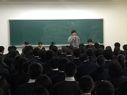 そんな中で、努力を重ねて合格を勝ち取った卒業生を迎えて1,2年生が体験談やアドバイスを聞く「卒業生講演会」が開かれました。6限目に1年生、7限目に2年生が、文系理系それぞれに分かれて、学習法やつらかったこととそれに対する気持ちの持ち方など、色々な体験談を聞きました。在校生からも色々と質問が出て、大変有意義な会になりました。