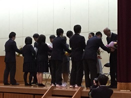 その後は離任式・退任式で、校長先生、教頭先生を始め、今年度本校を去ることになった15名の先生方からお話をいただきました。