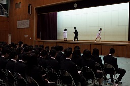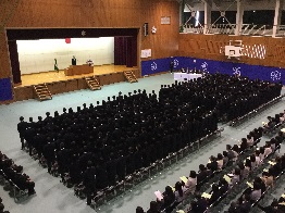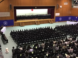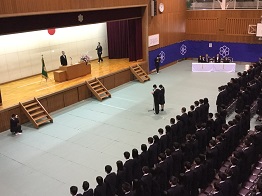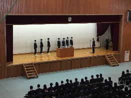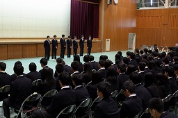 48()午後に入学式が行われました。男子137名、女子143名、計280名の新入生は緊張した面持ちで式へ臨んでいましたが、担任から呼名されると、しっかりと返事をしていました。式では在校生有志による合唱隊が校歌を披露しました。