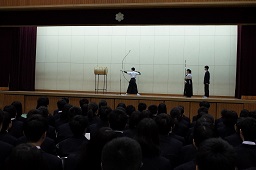 3月22日(金)受賞報告会と3学期終業式、離任式が行われました。受賞報告会では、インターハイに出場したスキーをはじめ、頑張った生徒たちから多くの報告がありました。