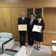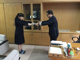 国税庁が行っている「税に関する高校生の作文」コンクールで、本校1年生の山田千愛理さんが、松任税務署長賞を受賞し、本日その授与式を本校校長室で行いました。松野照光松任税務署長より山田さんに賞状が授与され、緊張した面持ちで受け取っていました。合わせて本校に対し、感謝状もいただきました。