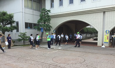 今日7月11日は、お知らせすることがたくさんある一日でした。朝、登校時には、自転車の鍵かけを訴える自転車防犯キャンペーンが行われました。白山署生活安全課、白山と野々市の防犯協会の皆さんが、生徒たちに、自転車の鍵かけを呼びかけました。
