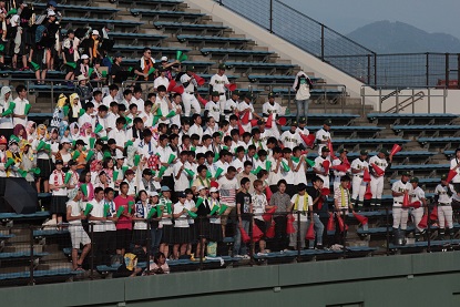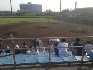 34度にもなる暑い日でしたが、スタンドでは、野球部員や保護者の皆様、OBの皆様、さらにブラスバンドを含むバス2台の応援の生徒たちで、熱い声援を送っていました。応援してくださった皆様、本当にありがとうございました。