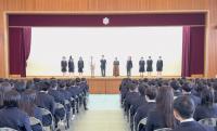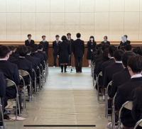 吹奏楽部の演奏に合わせて入場した卒業生は、ホーム担任の呼名に対してしっかりと返事をし、34H細川ひなたさんが230名の総代として卒業証書を受け取りました。学校長の式辞に続いて、野々市市長粟様、PTA会長大久保様からご祝辞をいただきました。24H清水瑛貴さんが送辞で卒業生へエールを送り、34H澤田萌香さんが答辞で高校生活を振り返りました。合唱部は「旅立ちの日に」を式歌として歌い上げ、卒業生を送り出しました。