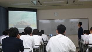 微生物が作り出したメタンガスを利用する研究についての講義の様子です。