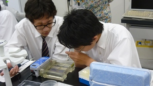 午後の実験や実習の様子です。DNAを切断する酵素を加え,切断が行われたかを確認するために電気泳動を行いました。