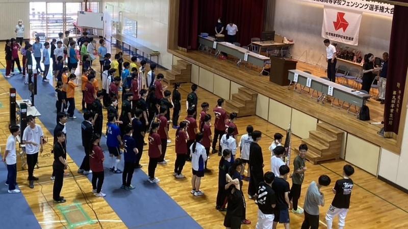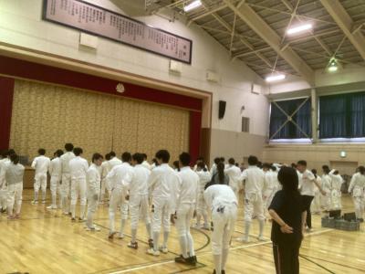 参加資格は県総体で、上位3人に入ることで、明倫からは、男子フルーレに24H奥村くん、男子エペに31H中野くん、男子サーブルに32H小谷口くんが参加しました。
