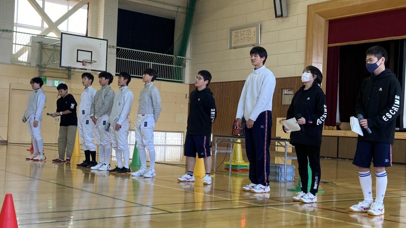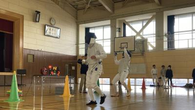この予選会は、1月4日(木)~1月7日(日)にかけて東京で行われるJOCフェンシング大会に参加する県内代表2名を決めるものです。明倫高校からはジュニアサーブル部門に1名、カデサーブル部門に2名、カデエペ部門に1名、カデフルーレ部門に1名が出場しました。