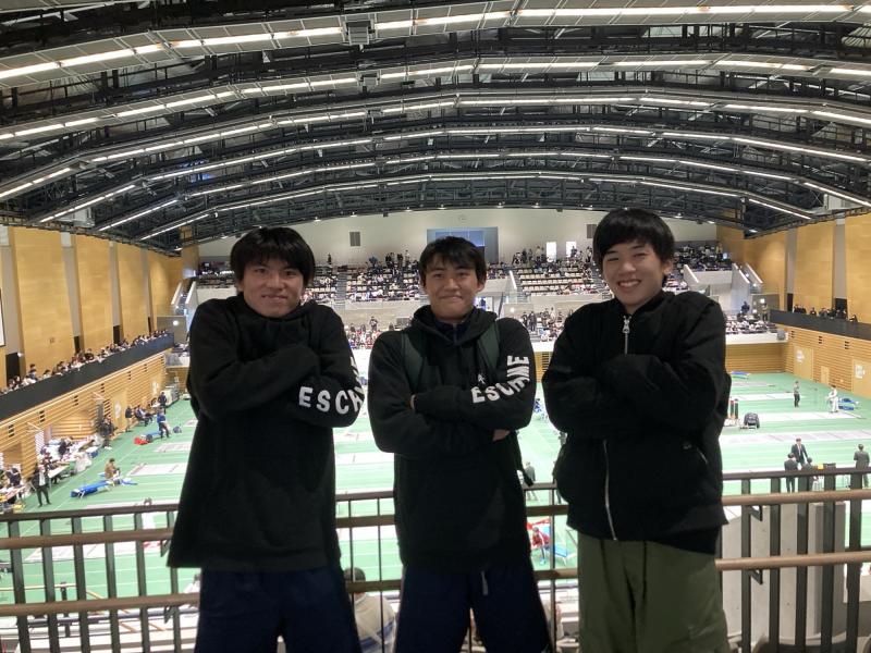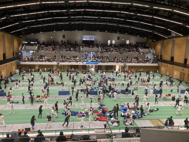 今回はカデ部門(U17)のフルーレとサーブルの2種目に参加してきました。この大会は、高校1年生はもちろん、中学生も出場しており、日本代表候補選手も出場する大規模な大会です。出場した14H中村くん(カデサーブル)、16H奥村くん(カデフルーレ)ともに初めての全国規模の大会出場であり、緊張と会場の雰囲気から本来の力が発揮できず、残念ながら予選プールで敗退となってしまいました。