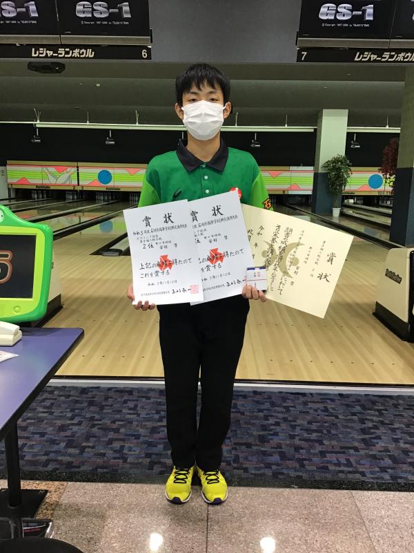 本日は団体戦のボウリング競技ですが、オープン参加で本校1年生の安村君が出場しました。