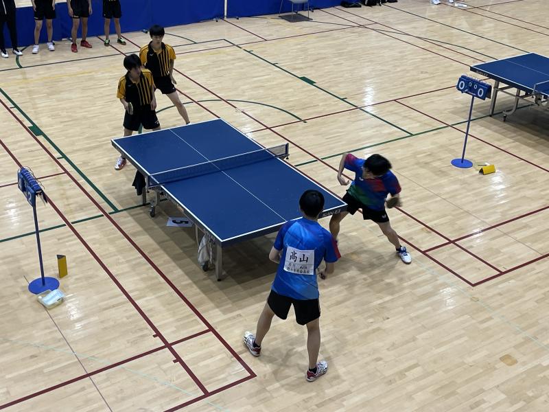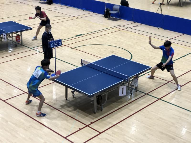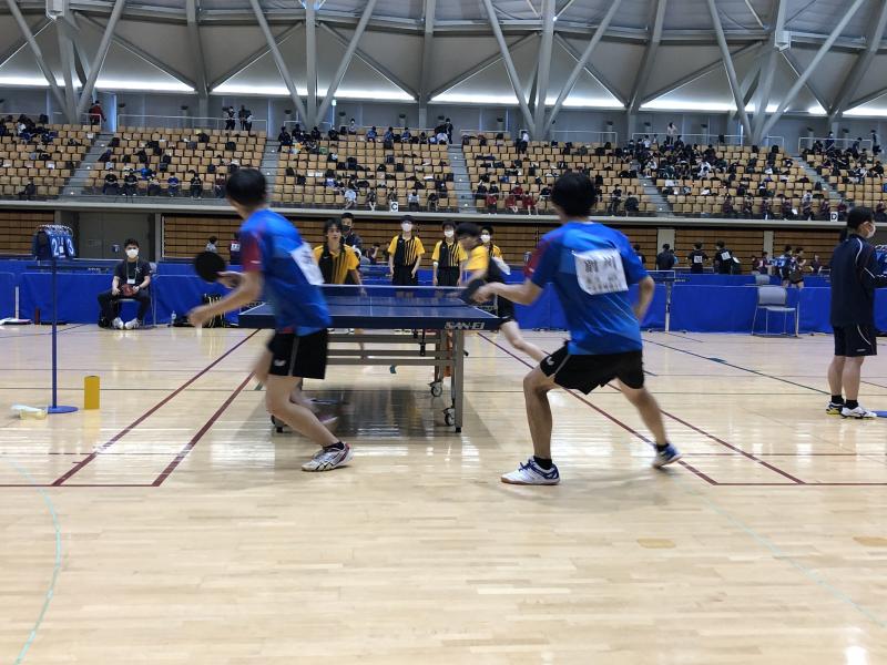 写真は男子ダブルス5回戦に進出し、第一シードの遊学館ペアと対戦する髙山(2年)・前川(2年)ペア