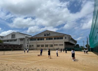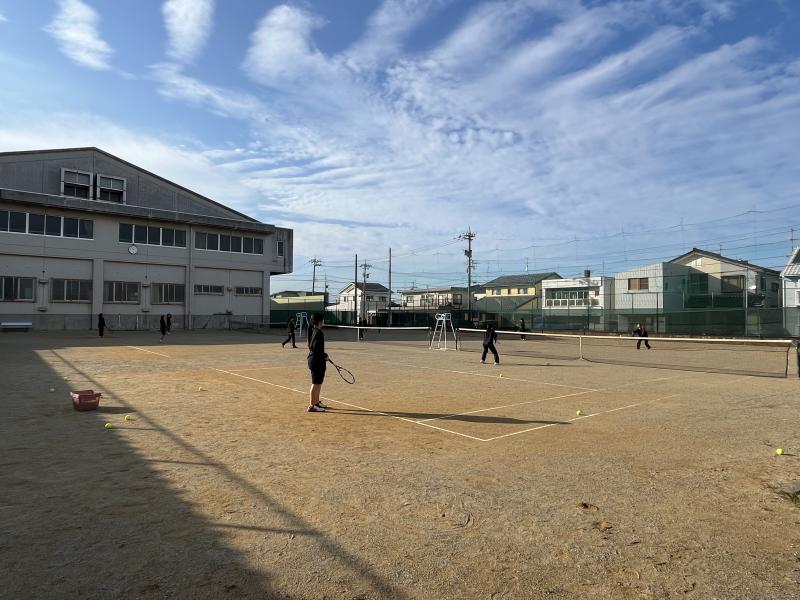 テニス部は11月3日、9日に地区ダブルス大会があります。各ペアがお互いに力を合わせて全力で頑張り、一つでも多く勝ち上がれるようにしていきたいです。そのために練習ではペアで課題を見つけ、それを練習で改善できるように頑張っています。大会まで日数は残り少ないですが質の高い練習を心がけていきます。