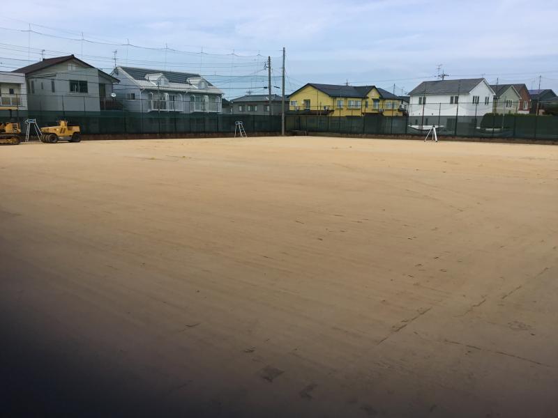 6月に予定されていたテニスコートの工事が延期となり、8月下旬にようやく工事が行われ、新しいテニスコートに生まれ変わりました!