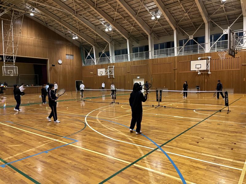 今月は雪の影響があったため中での練習がほとんどでした。中での練習は主に筋トレ、ランニング、(注)トップスピンプロなどをしていて、冬の間に体力作りも行っています。最近は顧問の先生も含めてみんなで1時間のランニングにチャレンジしました。個人のペースで頑張れていたのでとてもいい機会になったなと感じました。