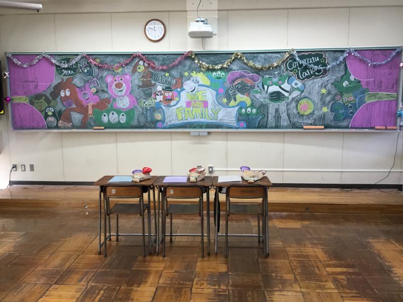 きれいな黒板アートや風船で教室をかわいく仕上げてくれました。