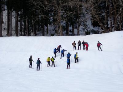 1日目は、雪上歩行体験と白山ろく少年自然の家で宿泊、1年間の活動報告を各学校が行いました。2日目は一里野温泉スキー場にてスキー(スノーボード)実習を行いました。