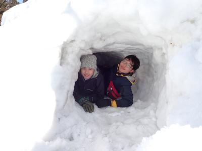 《完成した雪洞にて、L字型になっており奥行きがある》