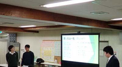 その後、英検受験者が合流し、食事の後、活動報告が行われました。ここ2週間、このためにプレゼンテーションの作成と練習を繰り返してきました。顧問からのオーダーとして「1人1笑をとる」ことを課しましたが、笑ってもらえた部分はあったものの、まだまだ課題が残りました。