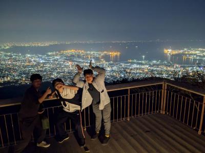2日目は、朝、2:00に起床し、阪急六甲駅(標高約60m)へ向けて、杣谷峠からカスケードバレーを標高差約560m下るところからはじまりました。この区間は、完全なナイトトレイルとなり、ルートファインディングを含め良い経験となったのではないかと思います。そして、阪急六甲駅前のコンビニにて、朝ごはんとお昼ご飯を調達し、電車にて六甲全山縦走路登山口の須磨浦公園駅(標高10m)まで移動して登山が始まります。鉢伏山(標高248m)、旗振山(標高252m)、鉄拐山(標高234m)、横尾山(標高312m)、高取山(標高328m)など、小さな山のアップダウンを繰り返し、間に市街地を挟みながら進む行程となりました。都市と山が近い神戸ならではの登山を生徒は楽しむことができたのではないかと思います。しかし、予想外の気温(23度程度)により予定のルートを歩き切ることができず、途中の鵯越駅でギブアップとなりました。その後は、電車、ケーブルカー、ロープウェイを乗り継いで掬星台まで行き、徒歩にて自然の家に戻るという、これも神戸ならではのルート選択となりました。