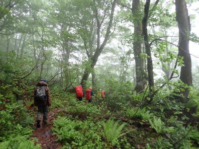 第2回目の県総体登山コースの下見として、白山別山に通じるチブリ尾根で登山活動を実施しました。本来は、5月29日(金)~30日(土)の1泊2日で実施する予定でしたが、天気予報を見て、6月1日(日)の日帰り登山に変更しました。予報通りではあったのですが、雨の中の登山となりました。