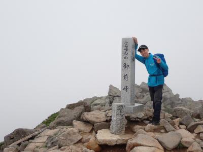 《山頂にて、晴れれば背後に白山が見られるはずだったが…》