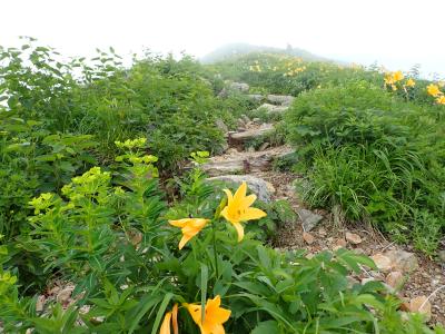 《観光新道、馬のたてがみにて、ニッコウキスゲの群生! ほんとに群生!》