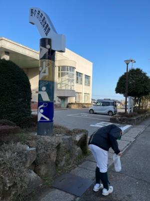 2023年2月12日 13時38分今日は練習前にいつもお世話になっている野々市市民体育館周辺のゴミ拾いをしました。『ゴミは拾う』『ポイ捨てはしない』人として当たり前のことを当たり前にできる、そのような人間に成長してほしいと強く願っています。
