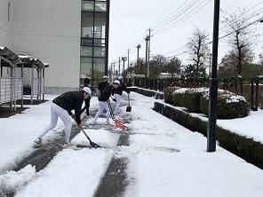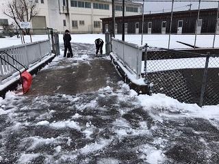 平日はクラス単位で除雪当番を回して行っていますが、今日は休日なので除雪ができていませんでした。