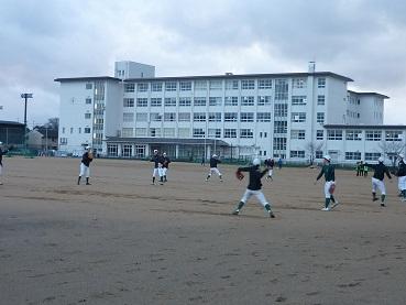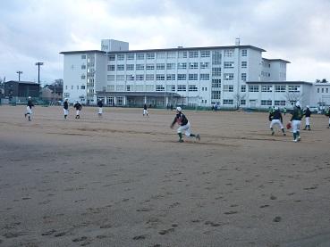吐く息は白く、頬を刺すような冷たい風が吹く中、明倫高校野球部は今日も元気に活動しています!