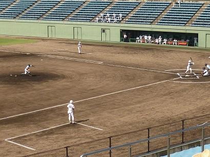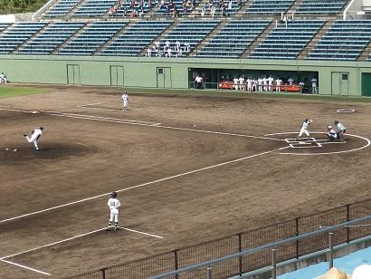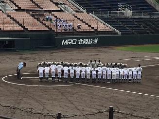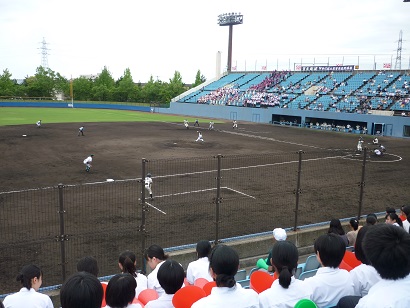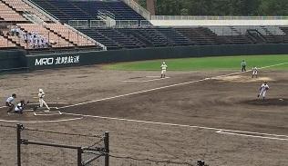 本校は金沢西高校と対戦しました。快音を響かせるも、なかなかヒットにつながらず、一進一退の攻防となりました。9回表に逆転のホームランを打たれ、その裏、粘りましたが、残念ながら4対3で、敗退しました。