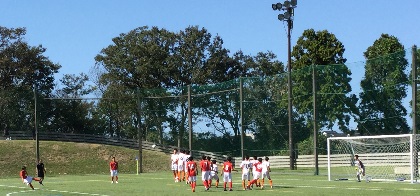 2018年10月9日 10時39分 8日日曜日、かほく市サッカー場で行われた全国高校サッカー選手権大会石川県大会2回戦で、本校は金沢伏見高校と対戦し、5-0で勝利しました。前半は双方守備的な試合展開から、得点を奪うことができませんでしたが、後半に入るとリズムをつかんで立て続けにゴールを奪い、快勝しました。 ↑応援の力も得て頑張る選手たち / 攻め込む明倫!↓