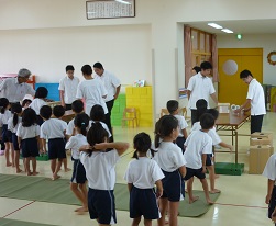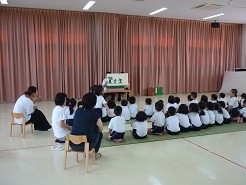 図書委員とサイエンス部の生徒が、ふじひら保育園を訪れ、絵本リーディングによるふれあい実習を行い、絵本の読み聞かせや、手遊び、空気砲の実験などで園児たちと交流しました。最初はお互い緊張もあってかぎこちない感じでしたが、次第に打ち解けて楽しく過ごすことができました。生徒たちにとって、とても貴重な経験になったようです。