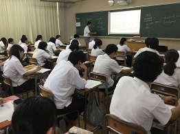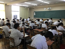 2018年8月1日 17時46分 今週は補習はありませんが、3年生が登校し主として自学自習を進める登校学習会が行われています。通常と同じ時間に登校し、慣れた自分の机で、自分で立てた計画に基づいて学習に取り組んでいます。わからないことがあれば、すぐに先生に質問することができ、途中で希望者参加の特別講義も行っています。外は暑い日々ですが、学校の中でも熱い取り組みが行われており、志望校合格を目指してみんなで頑張っています。