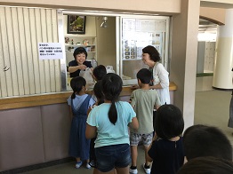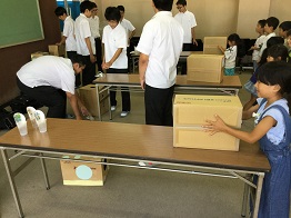 お昼は購買のパンをいただき、最後はりんくんに見送られてお帰りでした。子供たちにとって楽しいひとときであったのではないかと思います。また、本校生徒にとっても、小学生とふれあう貴重な体験となったようでした。