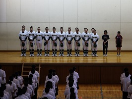 12日から始まる夏の全国野球選手権大会石川県大会に出場する野球部と、卓球中部日本大会に出場する選手への激励のための壮行会が開かれました。